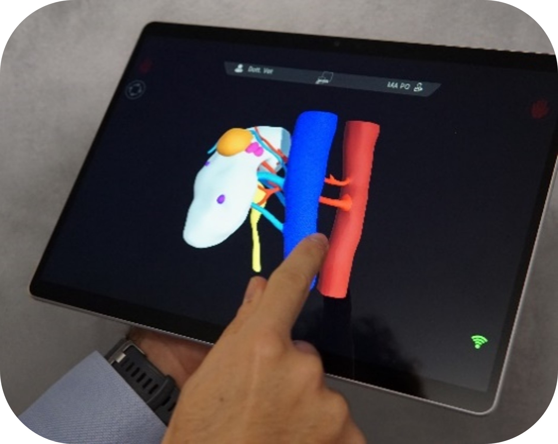 In chirurgia aperta e laparoscopica, le ricostruzioni HA3D® possono essere visualizzate con un dispositivo specifico, che unisce la flessibilità di un tablet e le prestazioni di un PC.